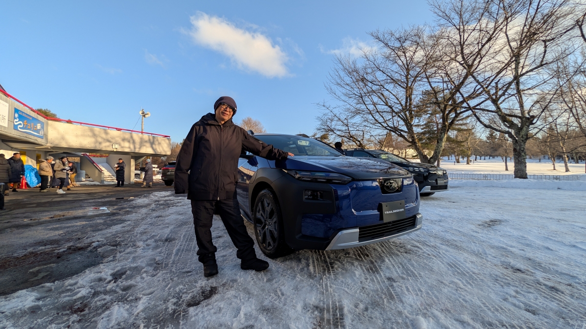まずトラクション性能と旋回が素晴らしい! これは「ソルテラ」の前輪モーターを「トレイルシーカー」では後輪にも使っていて、駆動力を強化したことで押し出す力と、姿勢変化にも柔軟に対応できる容量を確保したことが大きい。それによってシステム最高出力は280kWになり、0-100キロ加速はなんと4.5秒とのこと。この数字をググってみると日産・フェアレディZより速いかもってなる(笑)。そして回生ブレーキを使った安定した減速。さらに人間がフットブレーキでコントロールしても、自分の能力をはるかに超えた細かい制御で助けてくれる。これもリアのモーターを大きくしたことの恩恵でしょう。その他トルク配分などもすばらしく、とにかく雪上での性能はとんでもなく安心感があり、安定していたわけです。