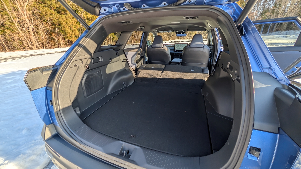 大きさは4845×1860×1675ミリで、これは日産「エクストレイル」やマツダ「CX-5」より一回り大きい。「ソルテラ」から後輪の後ろを155ミリ延長して、その分ラゲッジ容量を稼いだのでFWDで633L、AWDでも619Lという余裕の数字。これはアウトバックと比べると、72Lも多いんだそうだ。ここに遊びの道具を山ほど突っ込んで移動できるBEVって今までなかったのだ。