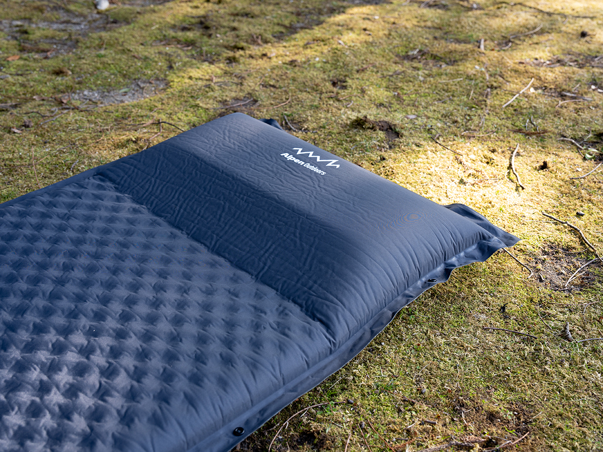 表面の凹凸構造が体圧を分散し、厚さ約7cmで地面の凹凸や底冷えを軽減する。大型のツインバルブを採用した自動膨張式で空気の出し入れもスムーズ。連結機能も備えており、複数枚並べて使うこともできる。