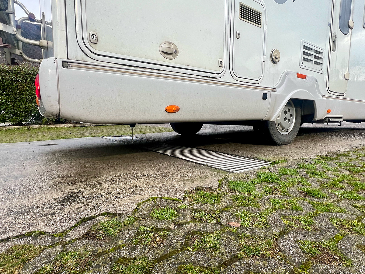給水場のすぐ隣に設置されていることが多く、地面に専用の排水溝が設けられており、その上にキャンピングカーの下にある排水口がくるように車をゆっくりと停めます。位置が合ったら、車体の下にある排水レバーを開けてタンクの水を流すだけ。タンク内の水が一気に排水溝へ流れていき、全て流れ終わったらレバーを閉めて作業完了です。