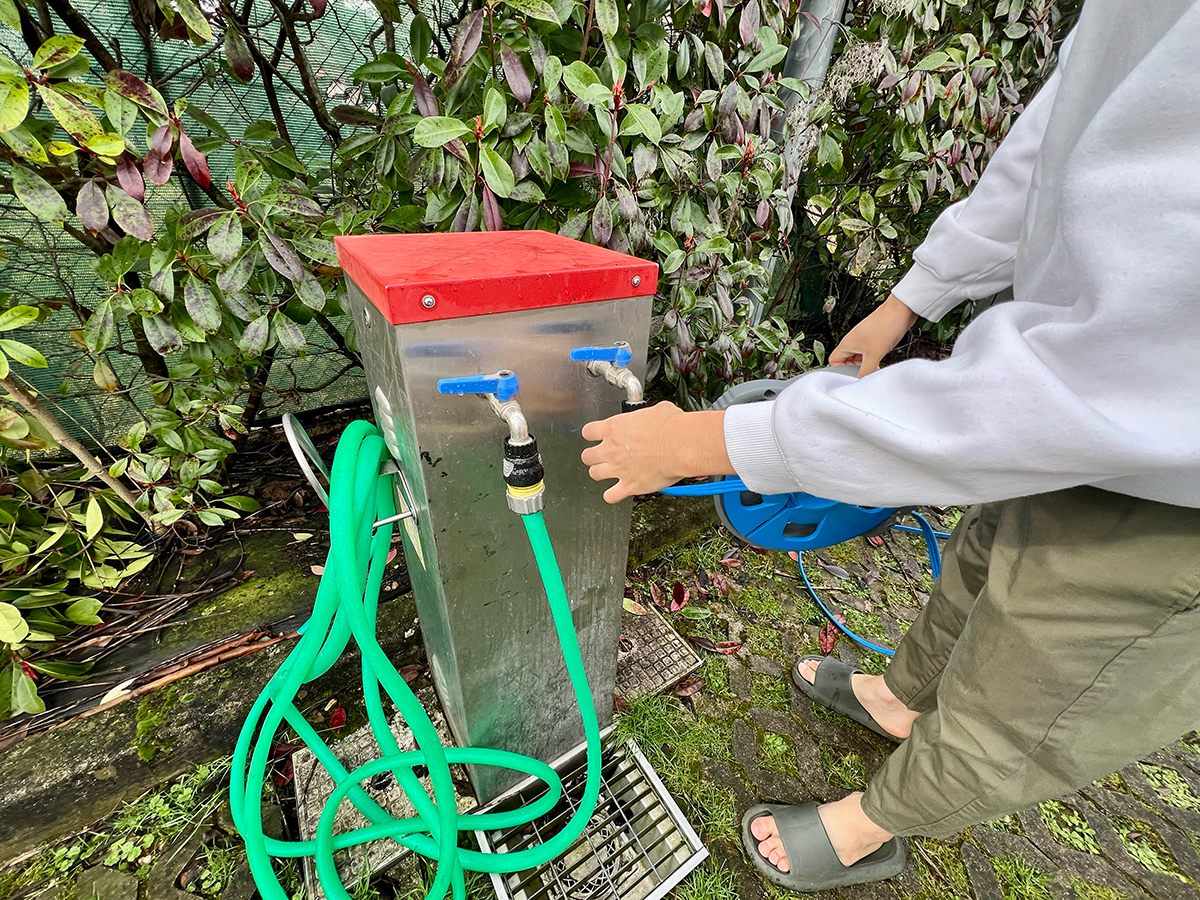 蛇口のみで、ホースが備え付けられていないことがほとんどのため、各自給水用のホースを常備しておくと便利です。