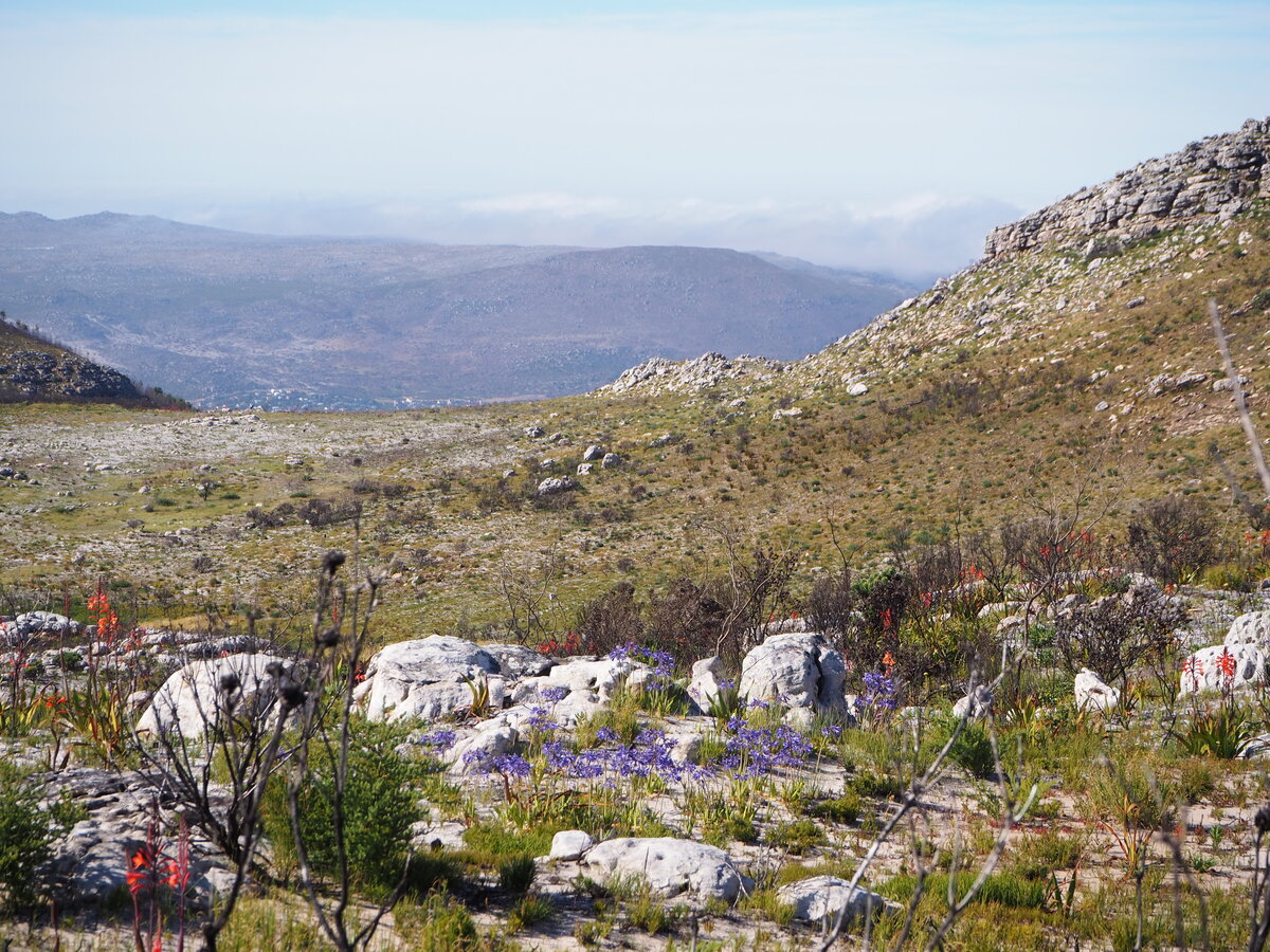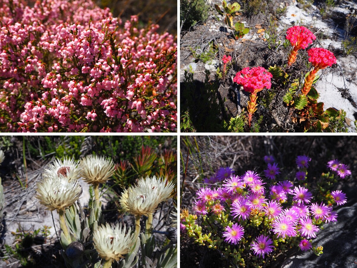 メインルートにもどり、標高754メートルの「ノールトフック・ピーク(Noordhoek Peak)」を目指します。標高が上がるにつれ、ネイティブフラワーの種類が増えてきます。