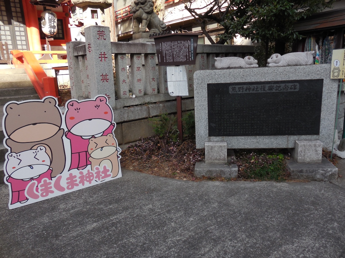 応永年間(1394~1428)の創建といわれる由緒ある「熊野町熊野神社」。神社そのものは趣ある佇まいですが、本殿の前に「くまくま神社」という看板が置かれていました。熊や狛犬などにちなんだオリジナルキャラクターがいて、御守りや御朱印などのグッズ(?)展開もしているようです。ファンシーにアップデートされた神社、ということなのでしょうか。