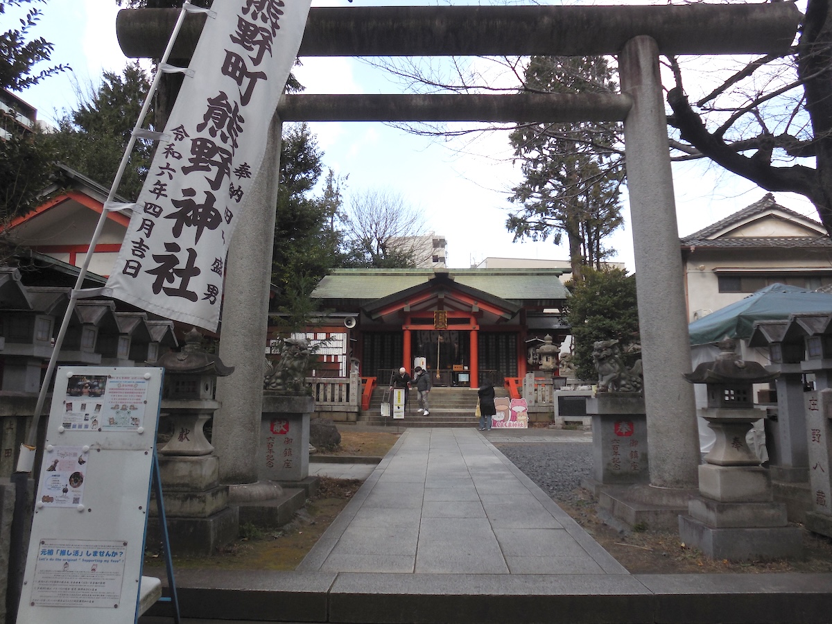 熊野町交差点レトロ空間のコレクションを見ていると時間がいくらあっても足りないので、谷端川緑道に戻ります。そう思ったのですが、すぐ隣に立派な神社がありました。