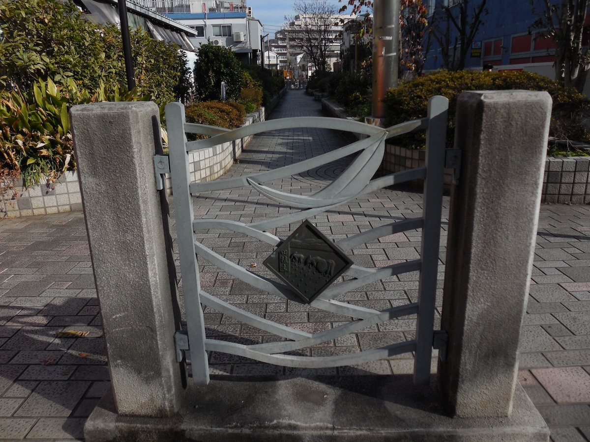 あらためて、谷端川緑道に戻ります。川越街道から北上すると、前田上の橋跡、前田橋跡、北浦上橋跡、北浦橋跡、中丸橋跡、金井窪橋跡、西前橋跡と、再びいくつもの橋を過ぎます。