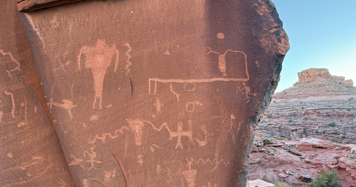 赤い岩に残る古代の痕跡