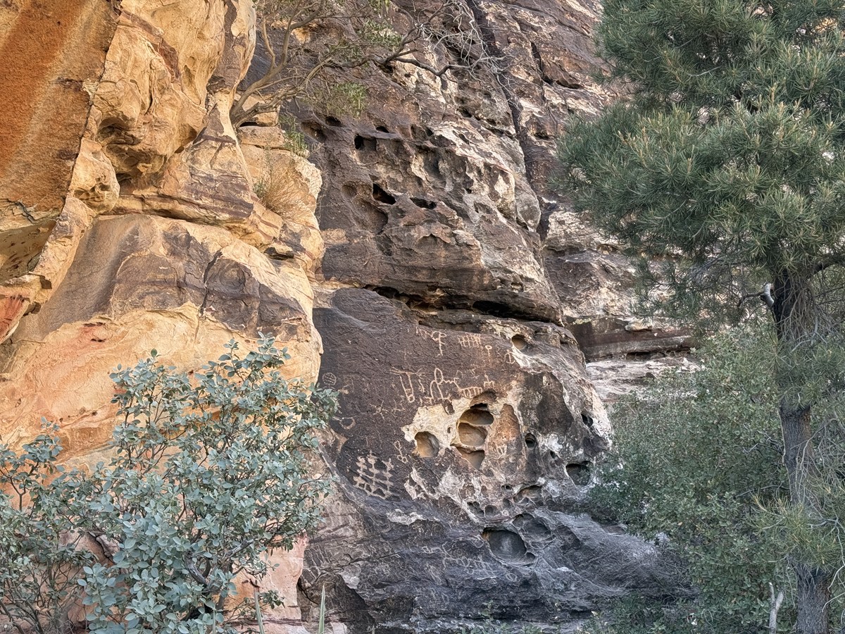 地図上のトレイルリストの中でも、「ペトログリフ」という名前に惹かれる筆者。ユタ州モアブを旅したときも感じましたが、アメリカ西部には、古代のけはいがあちこちに残っています。