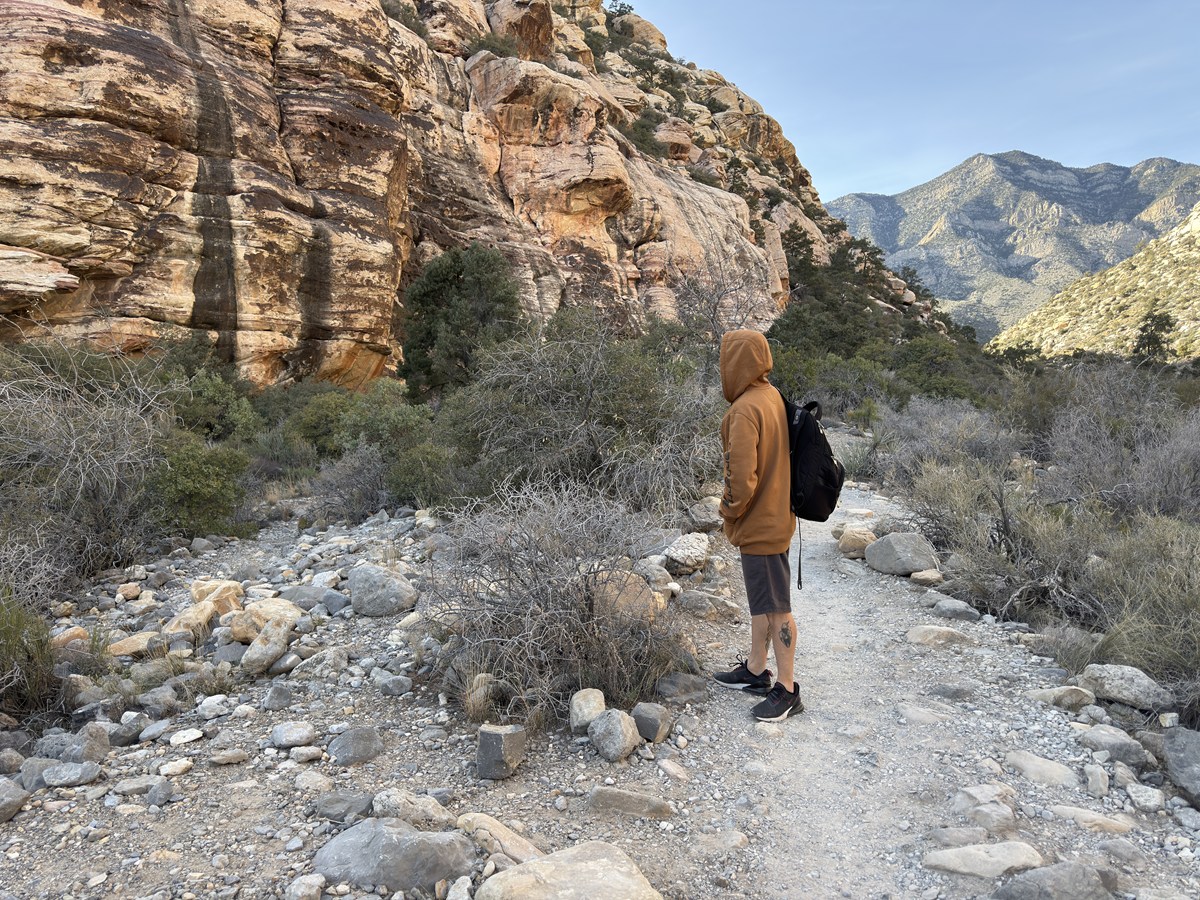 ネバダ州ラスベガスの中心部から車で30分ほど。レッドロックキャニオン国立保護区(以下、レッドロックキャニオン)は、にぎやかな街のすぐ側にありながら、赤い岩肌と乾いた砂漠の景色が広がる場所です。