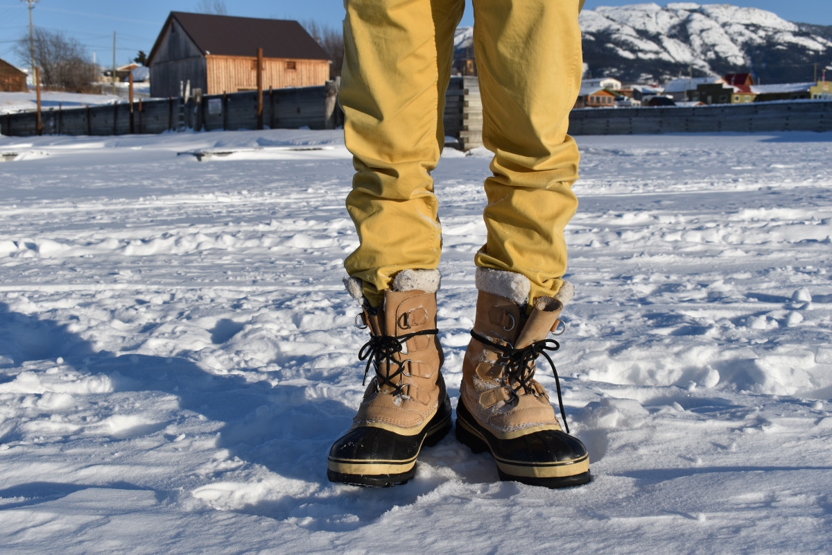 上下の重ね着の方法に苦戦する中、安定してユーコンの冬に対応してくれたのはソレルのスノーブーツ、カリブーでした。さすがカナダのブランドだけあり、10センチ、いや20センチと積もった雪の中でもざくざく歩けるし、氷の上でも滑りにくいです。それでいてブーツの中は濡れなくて済み、蒸れにくいです。これにモンベルのアルパインソックスを合わせると、ほぼ敵なしの状態に。マイナス10度台だったらどこまでも歩きたくなる快適さです。マイナス20度を下回ると冷え性の私は指先が痛み出しますが、そもそもそのくらいの気温のときにのんびり散歩することはないので問題なし。