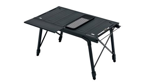 高さ30㎝と40㎝に調節できる、天板分割式タイプ。別売りバーナーをセットしてはずした天板プレートはフレームの4辺どこにでも取り付けられ、予備スペースとして活用できるようになっている。