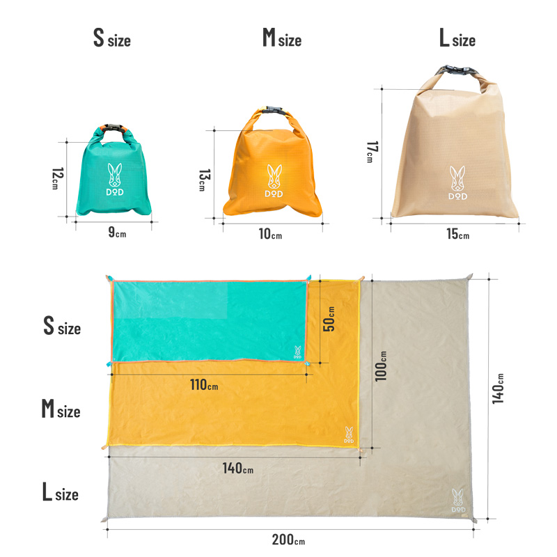 サイズは2人が座れる横長サイズ(S)から4人が座れる大判サイズ(L)まで3種類。ピクニックや散歩はもちろん、子どもの運動会やスポーツ観戦にも役立ちそうだ。