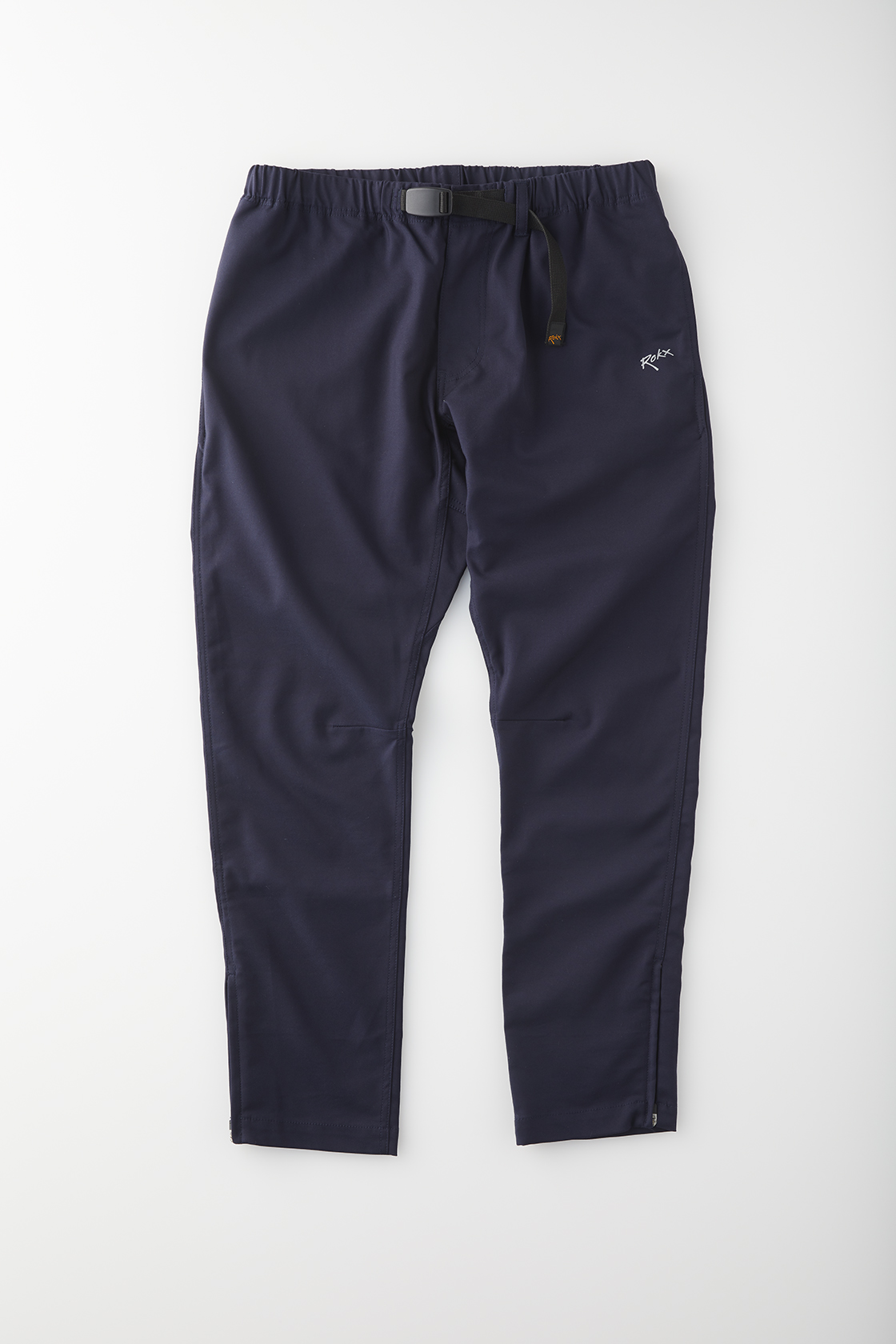ロックスの定番「LIGHT TREK PANT」に新色のグレーが登場した。これを機にこのパンツのよさをご紹介したい。履き心地はジャージのようにやわらかく、よく伸びる。一時期アウトドアウェアで一世を風靡した「ショーラー」(スイスのschoeller社の化学繊維)のパンツを思い出した。しかし、この「LIGHT TREK PANT」は、コットン50%、ナイロン47%、ポリウレタン3%。コットンが混ざっていることで、自然な風合いが感じられる。トレッキング用のパンツだが、町で履いてもしっくりくるだろう。カラー展開も、グレー以外にダークネイビーとブラックという落ち着いた色が揃っている。