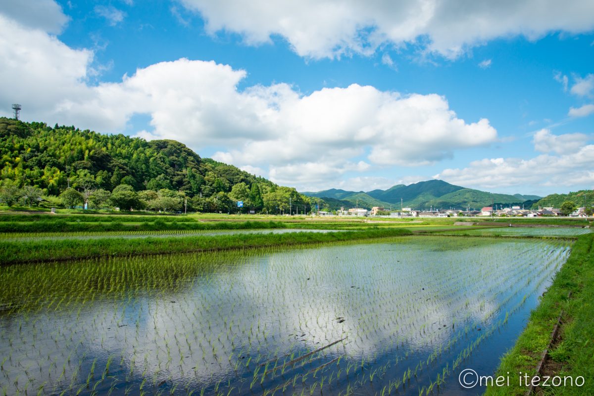 田んぼに水が張ると、水面に映り込む景色に魅了され、気づけば何か生き物がいないかと目を凝らしています。