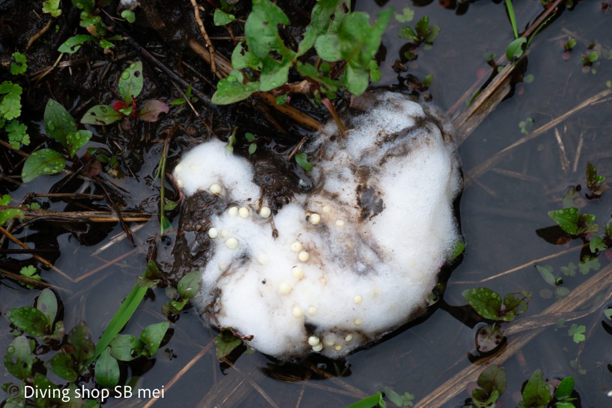 数日もすると、そこには白色のアオリイカの卵が確認できるようになります。