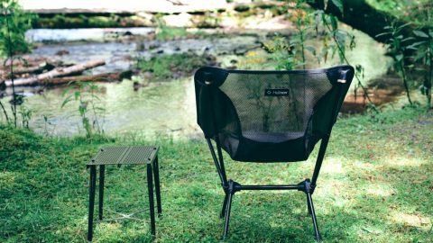 収納時は天板内部に脚とX字のパーツが収まり、コンパクトチェアと一緒に持ち運びやすく携帯しやすい仕様に。