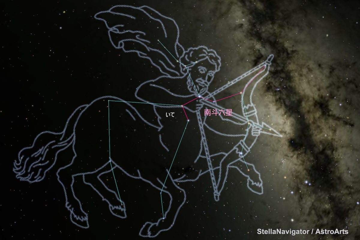 死を司る北斗七星に対し、生を司る星々が「南斗六星」です。夏の星座、いて座の一部です。