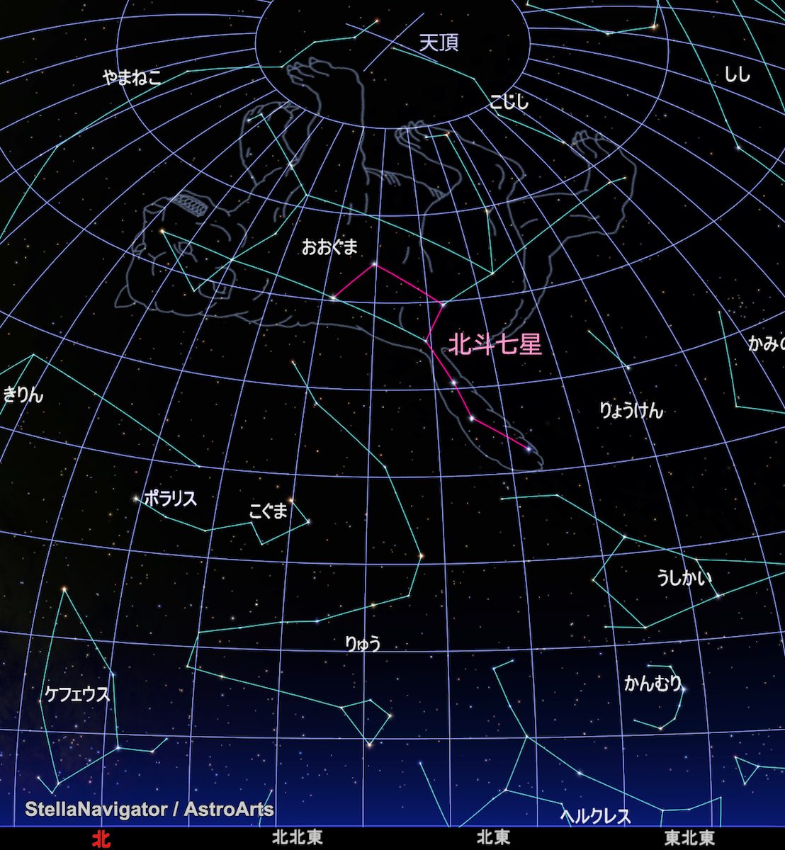 北斗七星が空高く昇る季節を迎えました。日本では七つ星、柄杓などの呼び名で親しまれてきました。漫画『北斗の拳』でも有名な北斗七星の由来を、ちょっとだけ紐解いてみましょう。