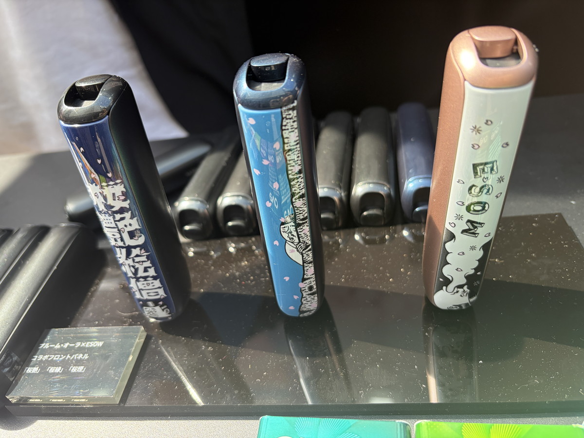 また「Ploom AURA」のデバイスを持参した人、または会場で購入した人を対象に、グラフィックデザイナーのESOW氏デザインのコラボフロントパネルへの交換サービスを数量限定で提供。