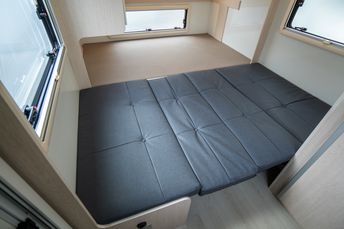 最後部の常設ダブルベッドと合わせ、大人4人が川の字で就寝できる設計になっています。