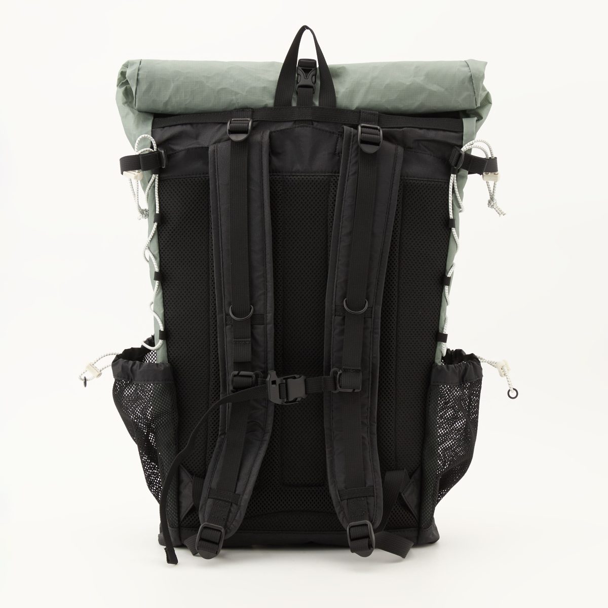 日常使いからアウトドアまで対応する容量を備え、サイドにはメッシュポケットやバンジーコードを配置している。