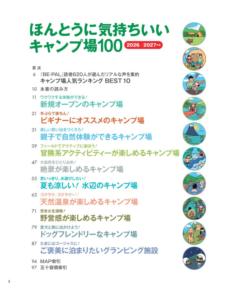 「ほんとうに気持ちいキャンプ場100 2026/2027」の表紙はこちら!