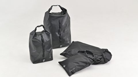 ロールトップクロージャーで、確実に水濡れから中身を守ってくれるドライバッグ。濡らしたくないものの保管に便利だ。