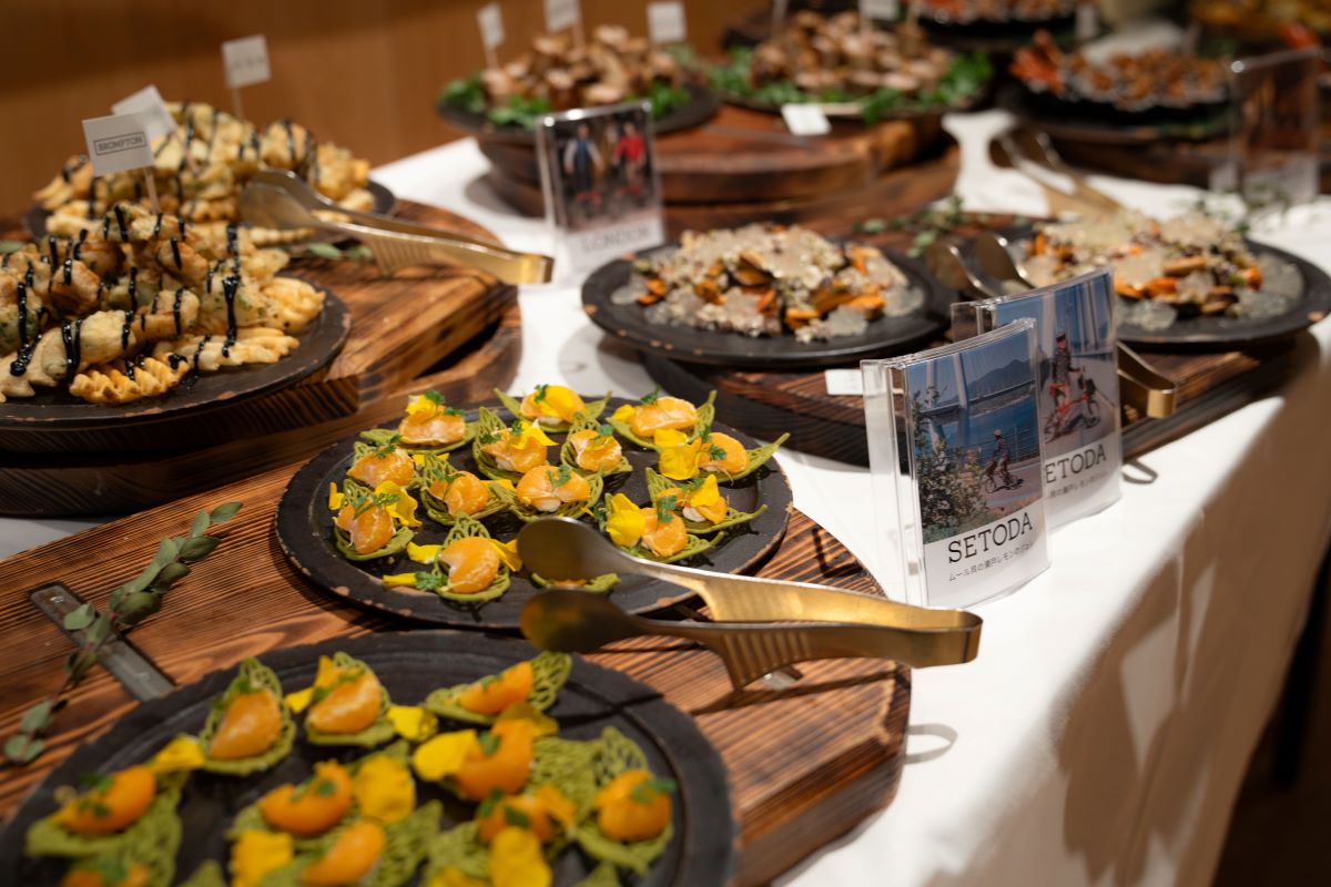 続いて行われた1周年記念パーティーでは、オーナーやメディア関係者が一堂に会し、落ち着いた雰囲気のなかで交流が深められました。会場にはブランドの歩みや「旅」の記憶を想起させる写真が展示され、ケータリングは過去の開催地にゆかりのある料理を用意。ブロンプトンが重視する「場所」と「コミュニティ」への敬意が、空間全体を通して表現されていました。