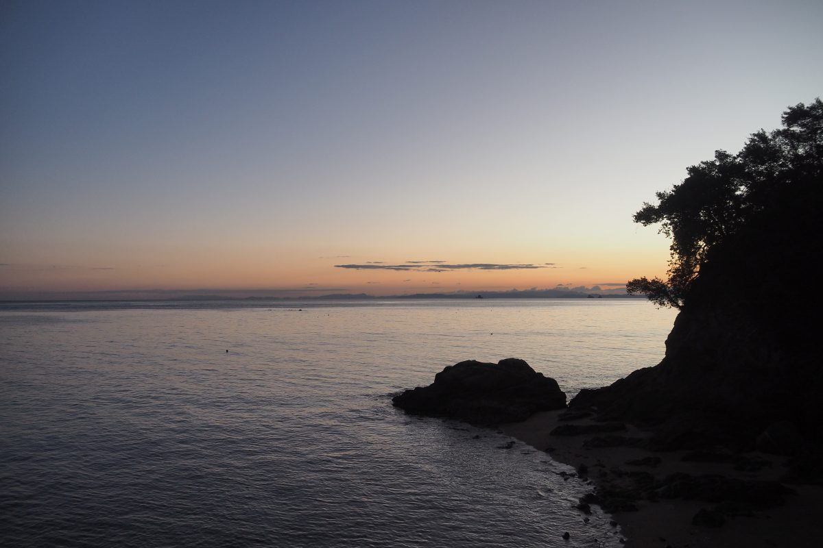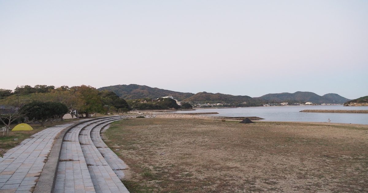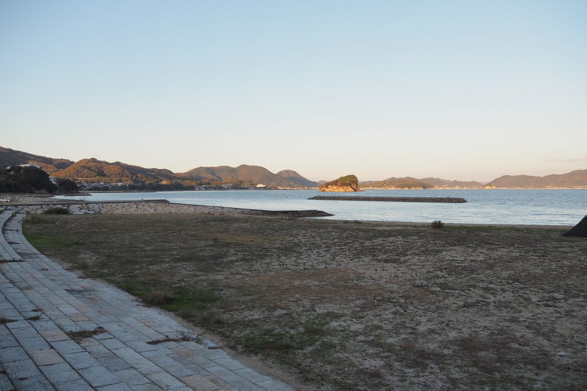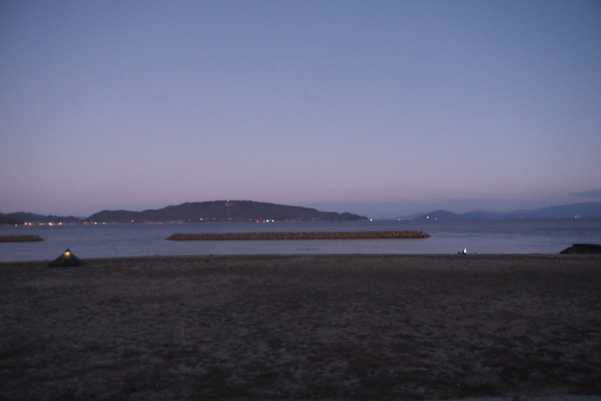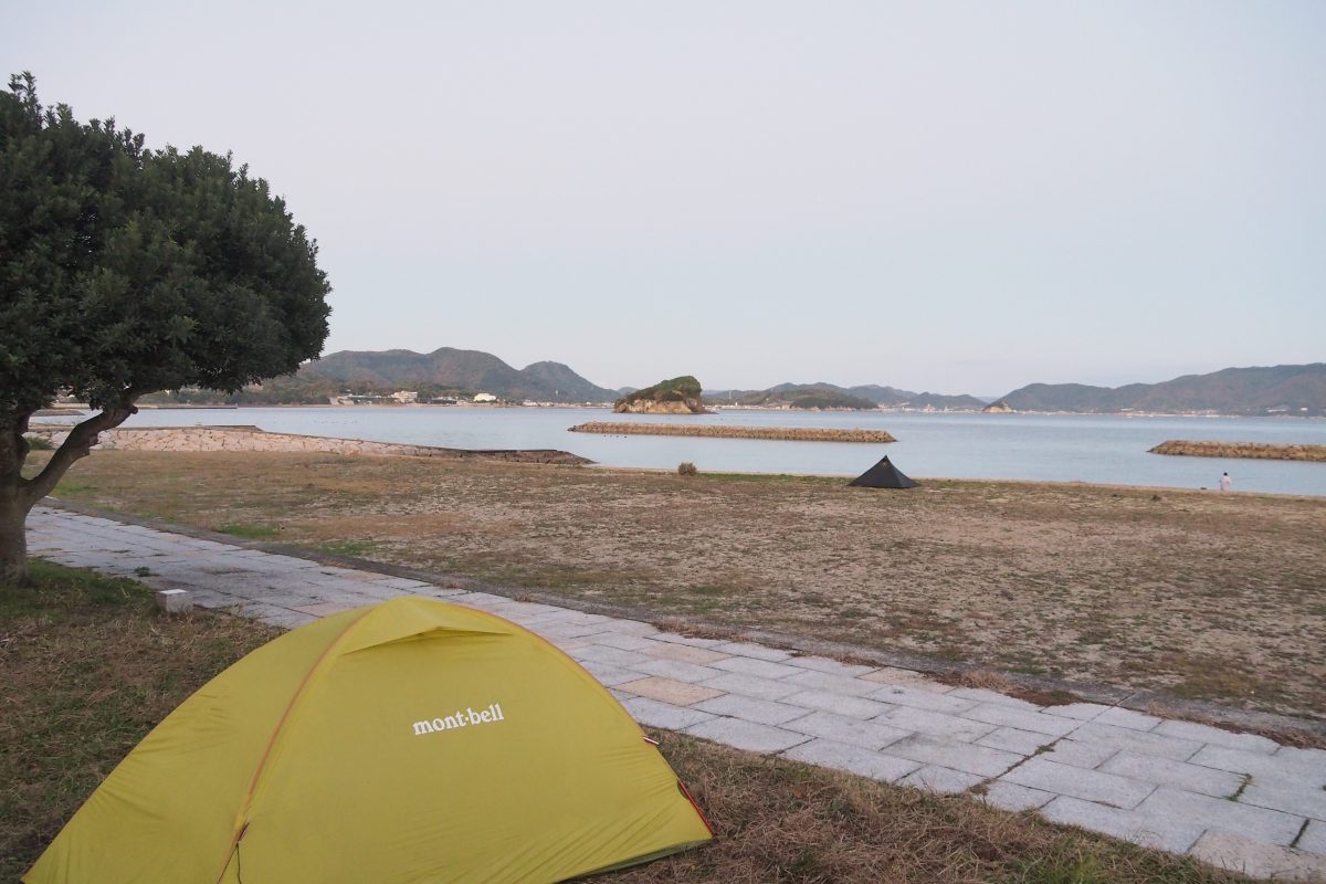 朝、目が覚めてテントから出てみると、風が穏やかで静かな瀬戸内海がある。