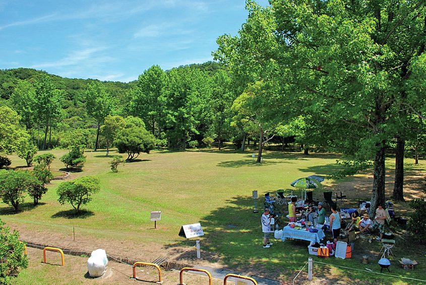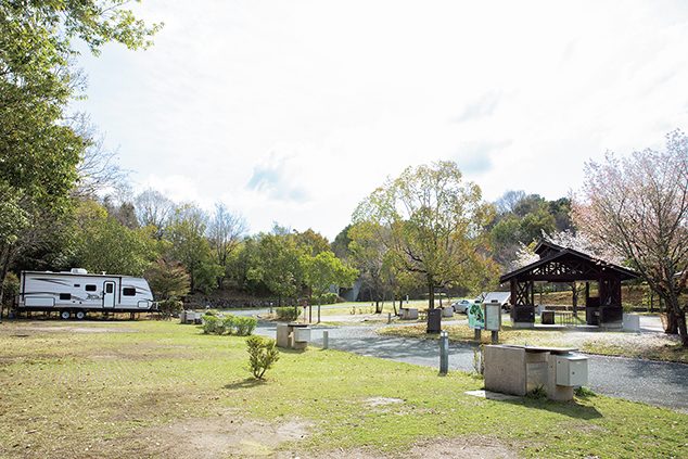 国営讃岐まんのう公園内にあるキャンプ場。全区画が車乗り入れ可能で、電源・水道付きのカーサイトとキャンピングカーサイトがある。整備が行き届いており、初心者にも安心の環境だ。
