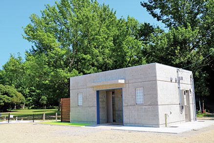 駐車場の奥と駐車場手前道路側に設置されている。炊事場や売店等はないので、焚き火台や炭の処理に必要な火消しつぼ、調理器具等は事前に用意しておこう。