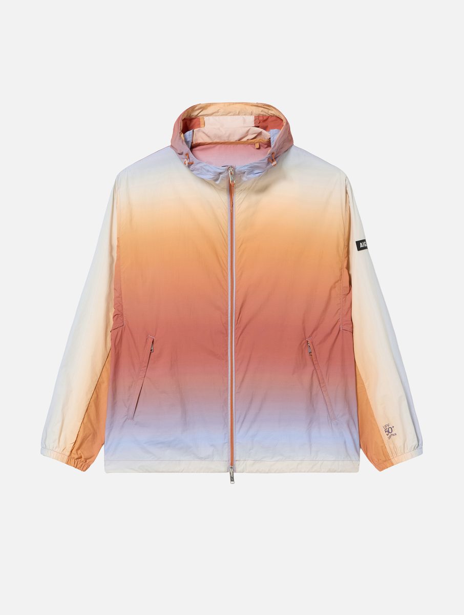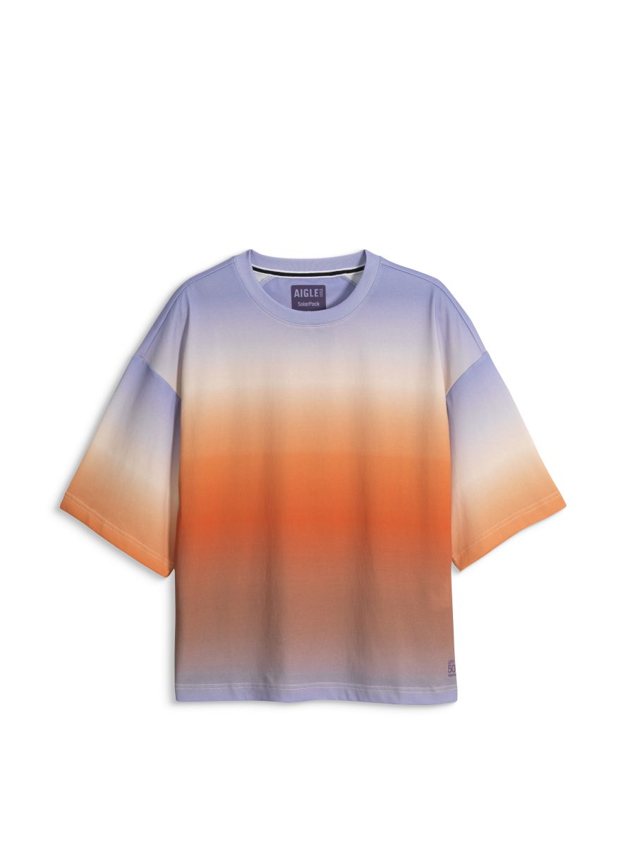 ベンチレーション仕様で通気性を確保し、快適な着心地をキープ。サンセットを思わせるグラデーションプリントが印象的なデザインに仕上がっている。