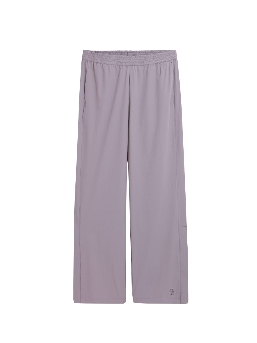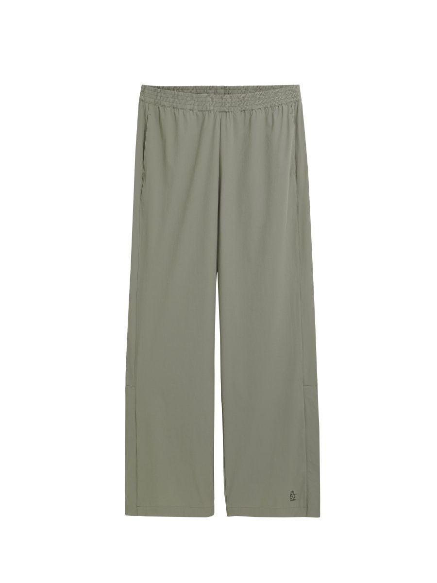 ウエストゴム仕様と裾のジッパースリットにより動きやすさを高めつつ、シルエットの変化も楽しめる。フレアラインが自然な動きを生み、アクティブシーンにも取り入れやすいデザインに仕上がっている。