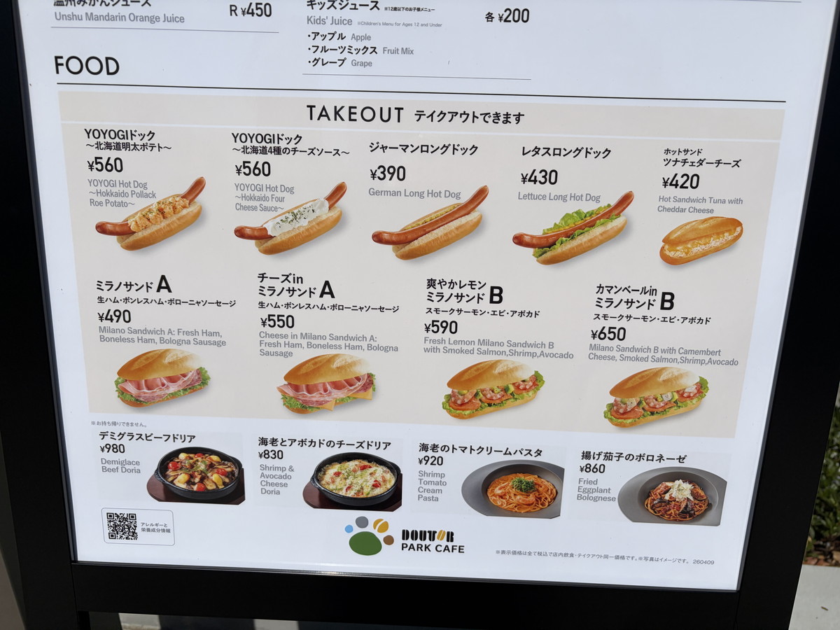 パスタやドリアなど食事メニューが充実 ドトール パークカフェ YOYOGI限定メニューも