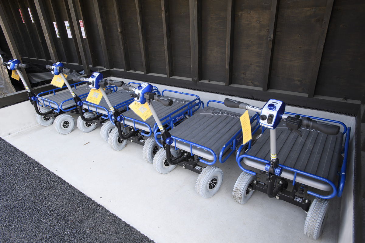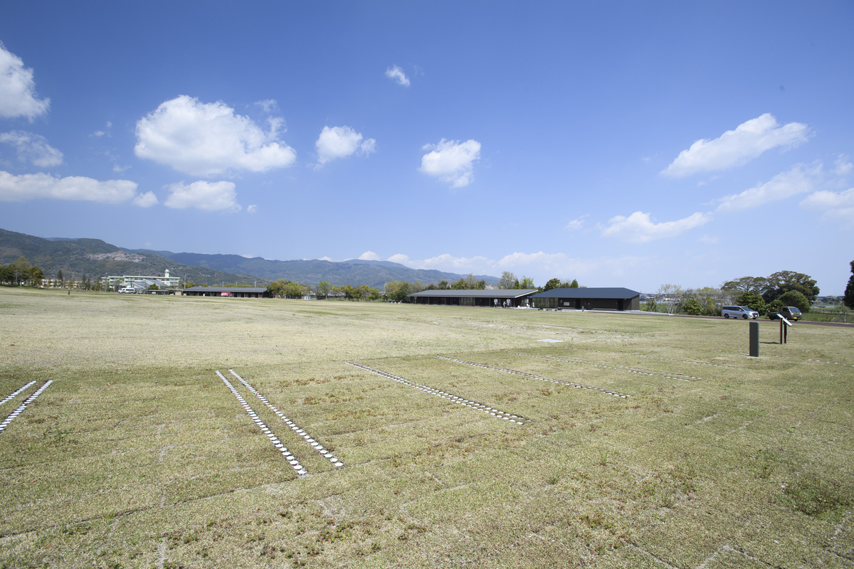 遺跡で火を使うことの許可を苦労の末に取りつけたり、遺跡の景観にマッチする建物はどんなデザインがいいのかなど、さまざまな困難をクリアして誕生したというキャンプフィールド。吉野ヶ里歴史公園は広大なため、北口キャンプフィールドと、新西口キャンプフィールドの2か所に分かれている。以前は広場だった場所を整備したとのこと。各エリアにはサニタリー棟(温水の出る炊事場、ランドリー、シャワーなどを格納)やトイレ棟、ストアがあり、設備の充実ぶりは日本有数だ。