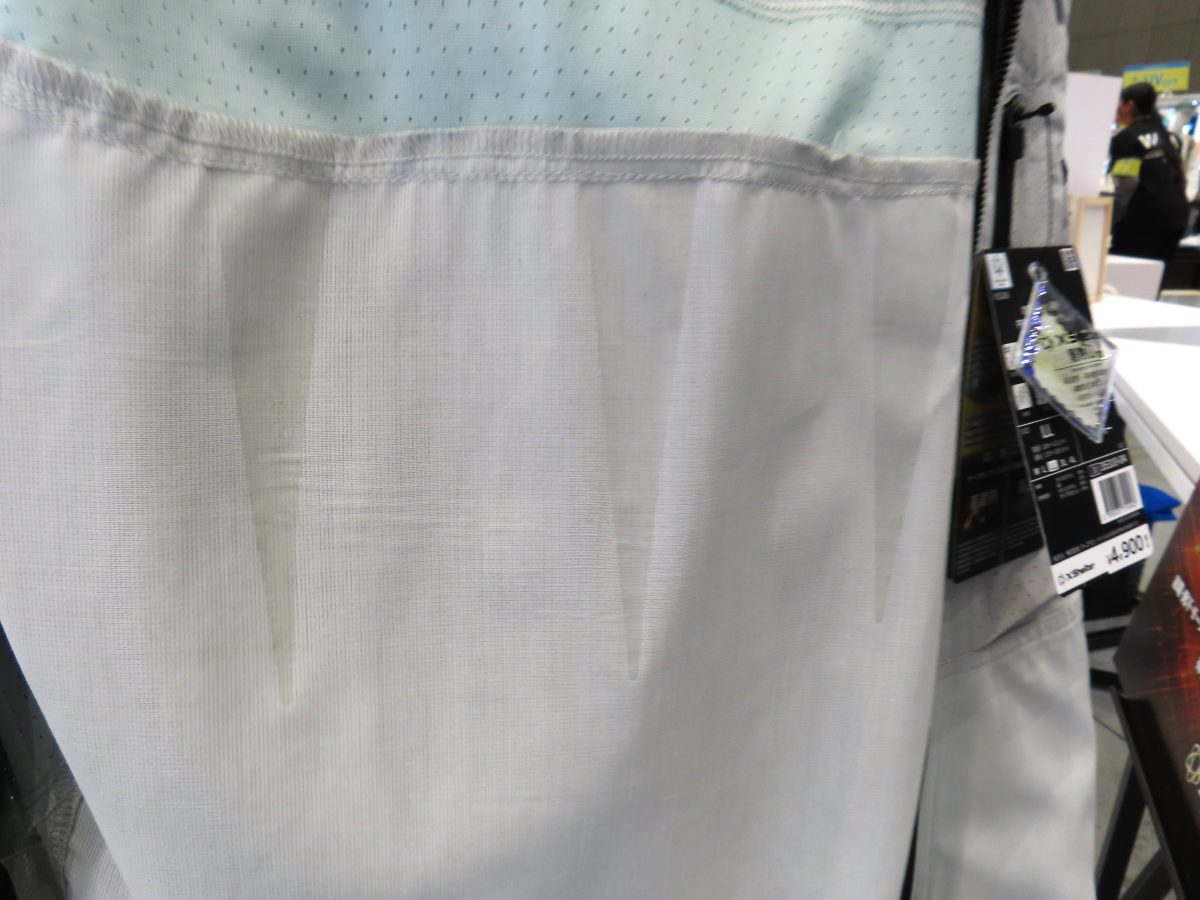 東レの先端技術から生まれたワークウエア素材を使用したという「XShelterΩ」です。以前の発表会でその名前は発表されていましたが、実際のウエアがいよいよ登場です。今回は、建築現場などで作業するためのジャケット、シャツ、カーゴパンツという3アイテムが展開されます。今年の夏、最高気温41.8度の更新があれば、一般向けの製品も開発するという話もあるため、来年は、バリエーションが増えている可能性が高そうです。