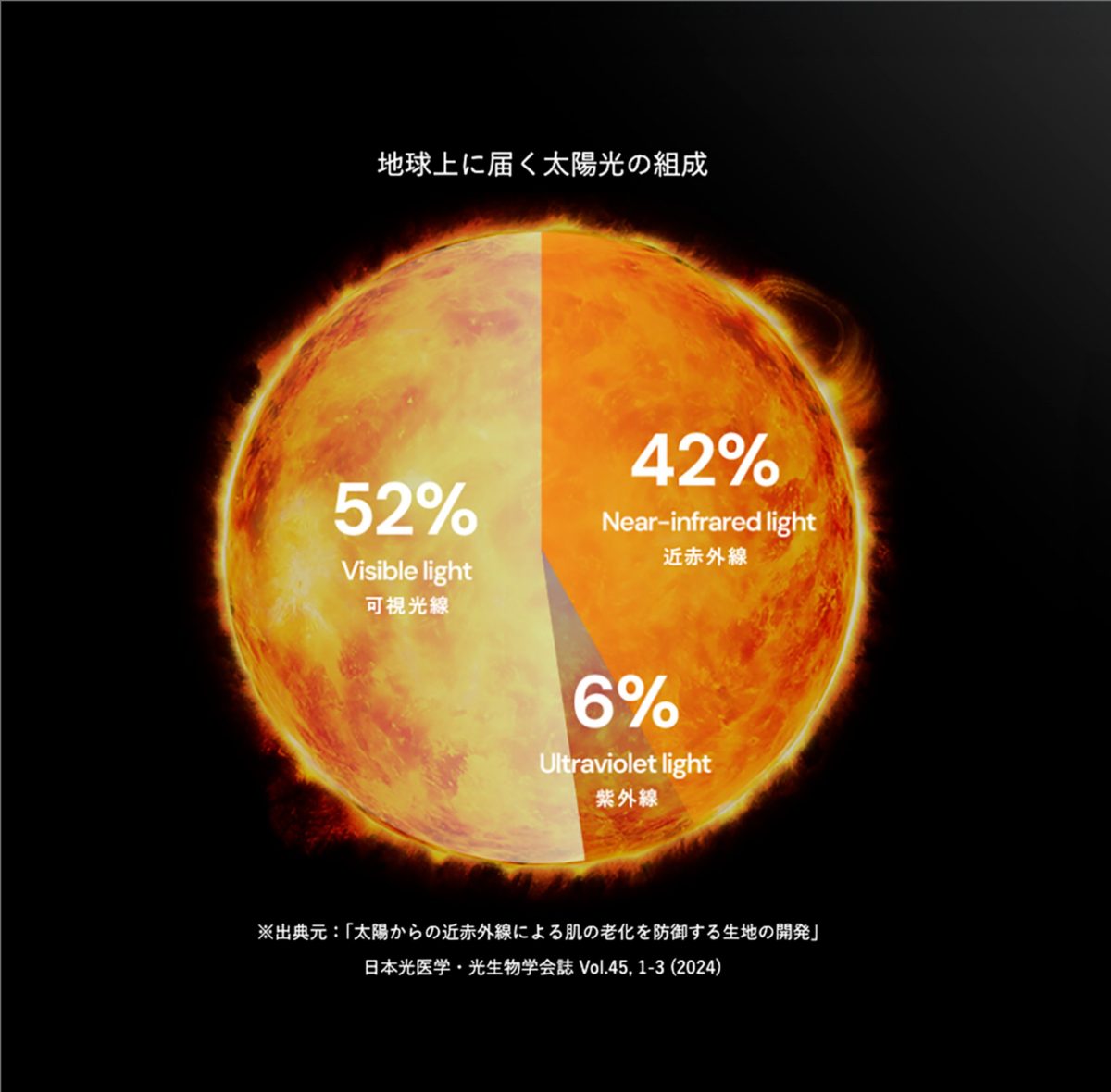 年々厳しさを増す暑さの中、アウトドアシーンにおいては“日差し対策”と“快適性”の両立が重要になっている。特に衣服内の温度上昇や熱疲労の一因となる可能性が指摘されているほか、シワやたるみの原因とされるのが太陽光の約42%を占めるとされる近赤外線だ。