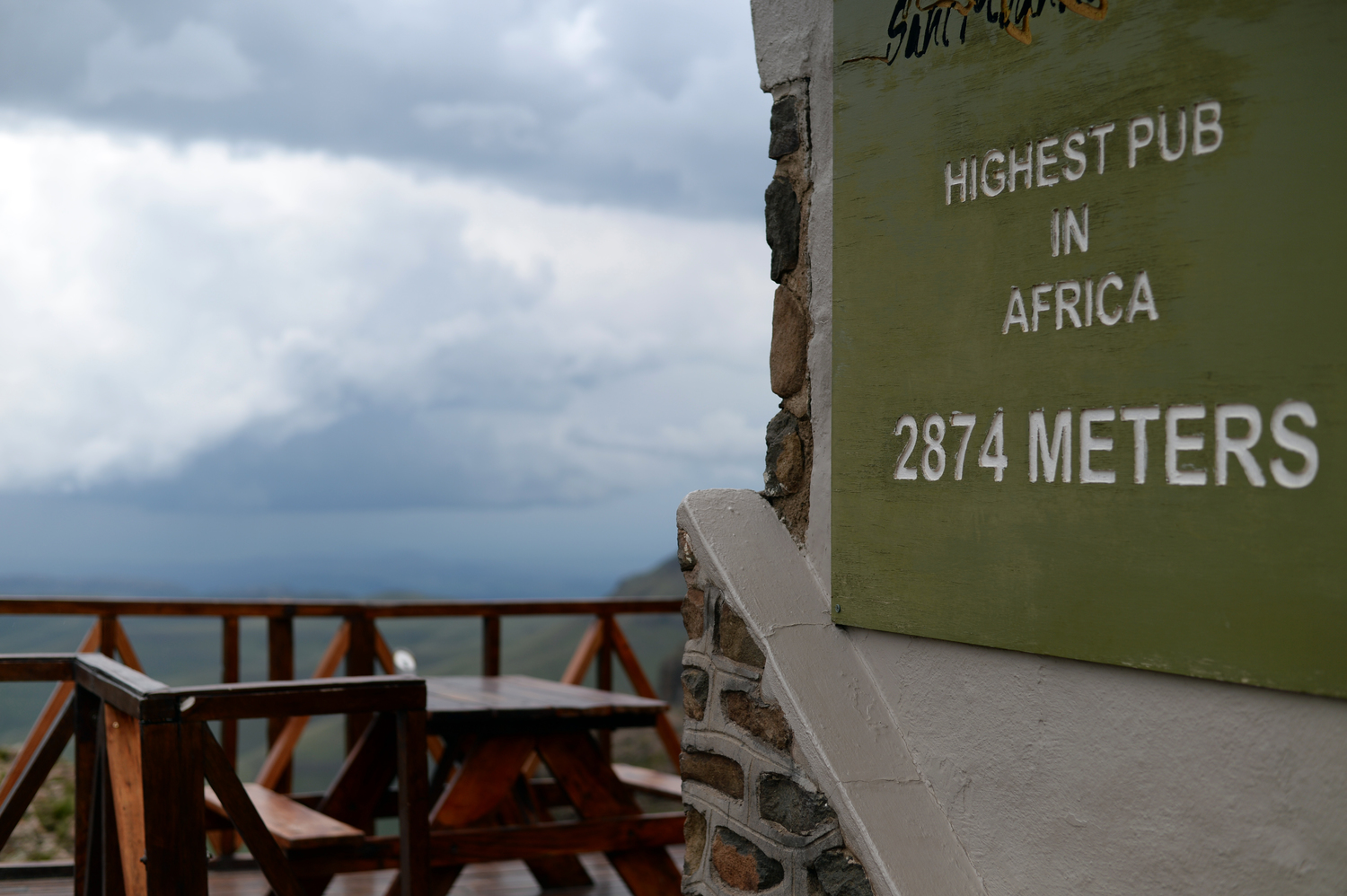 峠の名物は、アフリカで一番高いPub。高いのは値段じゃありません。標高2874m。実はこのパブだけ、ぎりぎり南アフリカの領土だったりする複雑な立ち位置です。