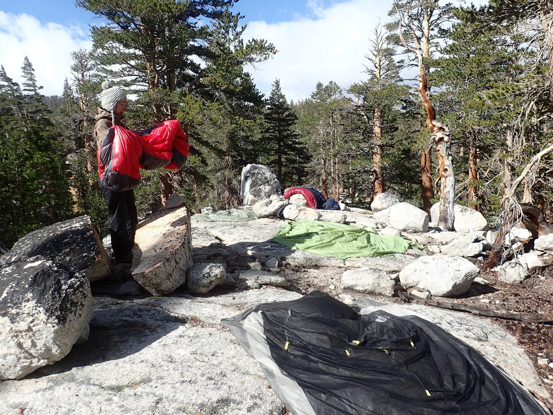 止む気配のない雨に、テントの中で私の頭はぐるぐると考えを巡らしていました。もし、明日一日中雨だったらどうしよう。テントの中で周辺地図をくまなくチェックしても、迂回できそうなルートは標高が高く、距離が長くてとても無理そうです。もはやMtホイットニーを越えるしか方法はありませんでした。