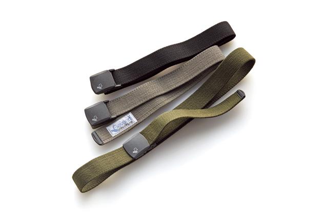 程よい伸縮性で、最良のフィット感を保てるのだ。ベルト地は、丈夫な糸とゴム系素材のエラストディエンを織り上げて、耐久性にも優れている。軽い樹脂製バックルは無段階調整式で、好みの締め込みが可能だ。