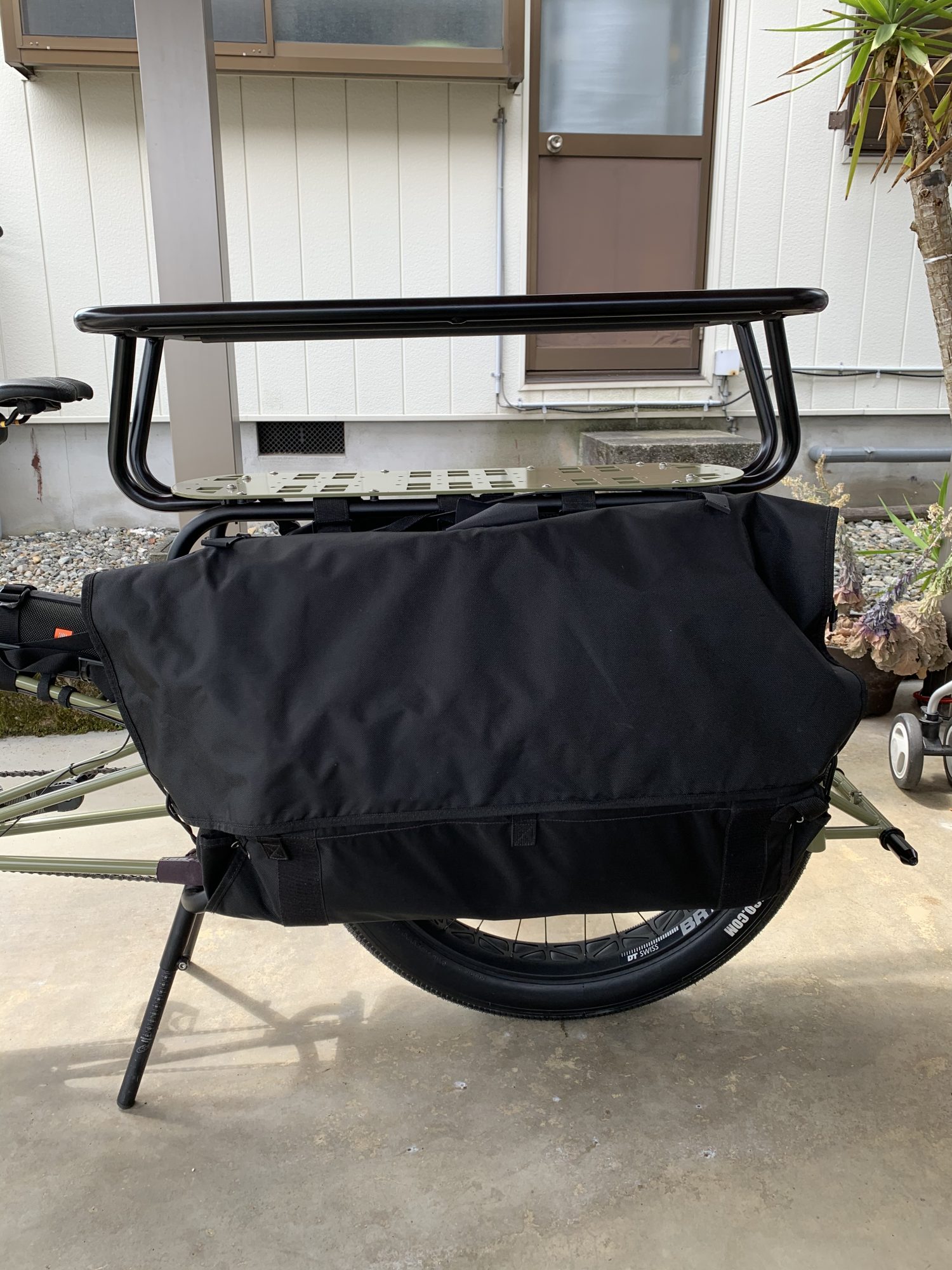 リヤには定番のDummy Bags(税込26,400円。左右ペア)を使用している。この純正バッグは、単体での販売のほかに、完成車、フレームどちらで購入しても付属する。ロングテールバイクを専門に販売するエクストラサイクル社のバッグとは違い、前後から水が浸入することもあるが、荷物の大きさに合わせてバッグの展開を様々にアレンジできる点が魅力的だ。