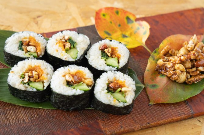 秋の山歩きやハイキング、行楽弁当にもおすすめ!「甘辛ミックスナッツ太巻き」の作り方