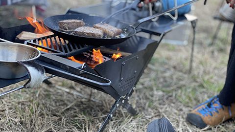 メッシュ火床とチタンフレーム。軽さを追求した焚き火台&五徳