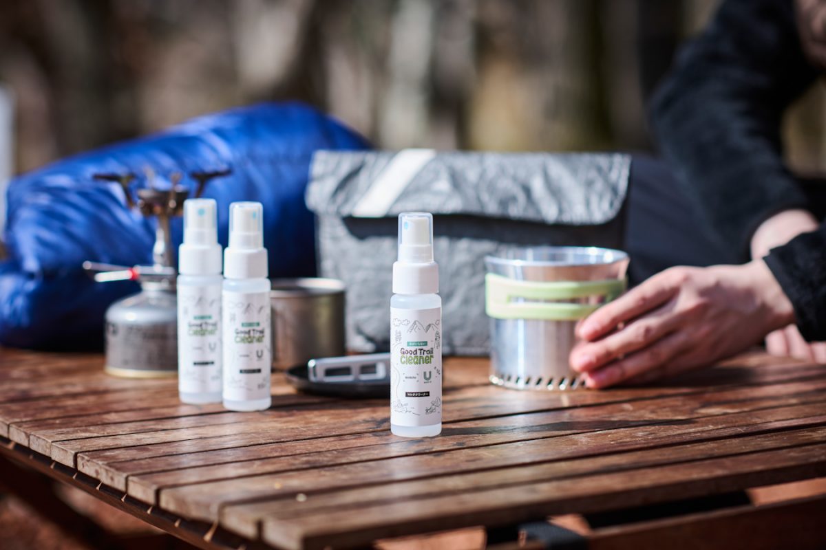 アソビトのアウトドギア専用クリーナーを使うと、洗浄・消臭・除菌がこれ1本で完了!