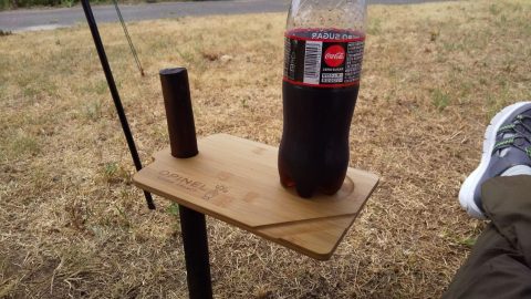 針金と水切ネットによる折り畳みソロテーブル[読者投稿記事]