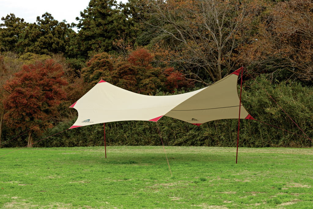 出入り口の邪魔なポール不要!アレンジ自在な新発想のタープ&ポール