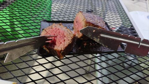 笑‘sのギアで調理したハンバーグを、おろしたてのソロ・トングで食う[読者投稿記事]
