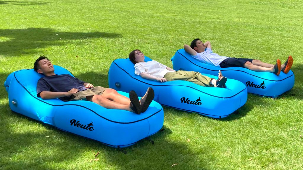 バッテリー内蔵でスマホ充電もOK!約60秒でふくらむ「ワンタッチ・エアソファー」