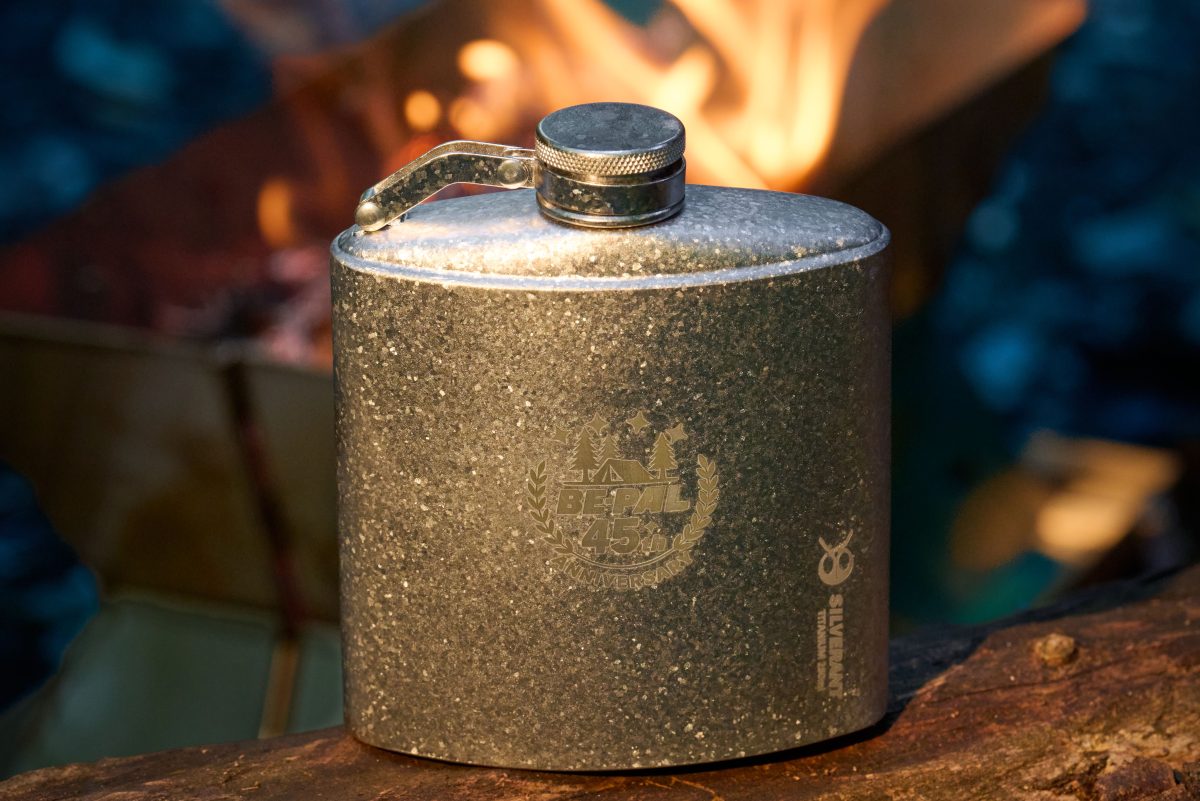 『BE-PAL』45周年記念商品の第一弾は、純チタンを結晶化した「きらきらスキットル」!