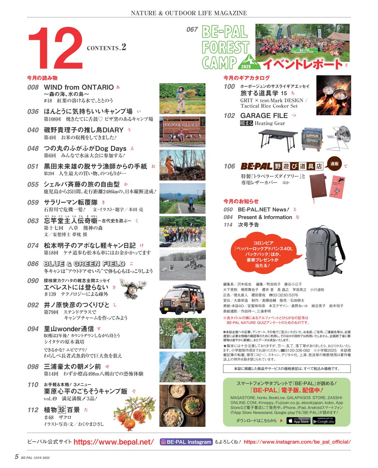小特集は『絶対買いの“適暖”アウター24選』『“給電グルマ”の選び方』ほか、新連載『アウトドアは運動だ! 斎藤幸平が歩いてコモンを考えた』もスタート!