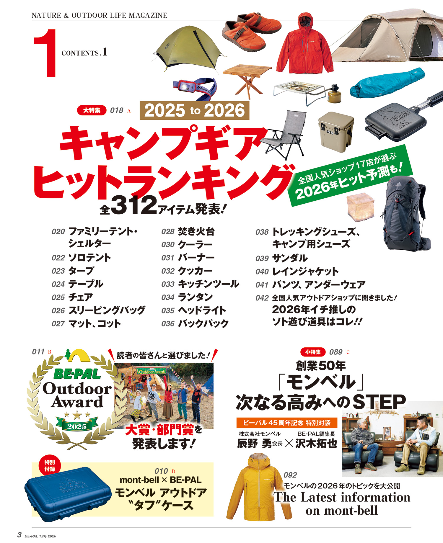 大特集は『2025 to 2026 キャンプギアヒットランキング 』です。